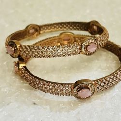 GOLD PLATED SET OF 2 bangles stones and gem made in indian brand new with box size 3" diameter of each bangle$45Irving, TX