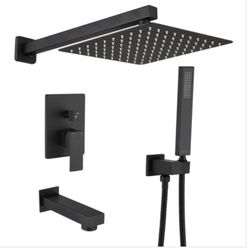 Shower System Wall Mounted with 12 in. Square Rainfall Shower head and Handheld Shower Head Set, Matte Black$200Fort Worth, TX