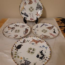 LYNN CHASE Harmony ANIMAL SET of 4 Luncheon PLATES Unique Wildlife 24K GOLD Trim$410Mckinney, TX