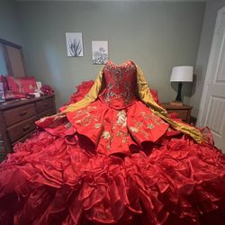 Red Quinceañera Dress Ragazza Fashion Ruffled Charro Embroidered Ball Gown with flower and crowns$500Grand Prairie, TX