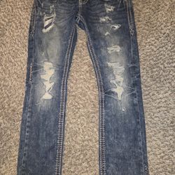 True Religion Ricky Super T Jeans Blue Stitch Size 33 Distressed$65Plano, TX