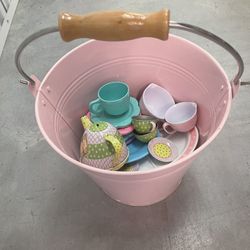 Pottery Barn Pink Pail Bucket w/ Tea Set Dishes$25Plano, TX