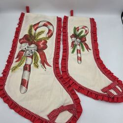 VTG 80's 2~ Handmade Christmas Stockings Bells Candy Canes Wreaths Ruffles Red $49Grapevine, TX