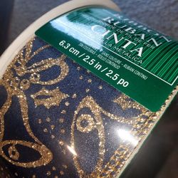 Kirkland Navy Blue Ribbon with Metallic Gold Glitter Christmas Bells 50 yds 2.5 in, Size: 50 Yards