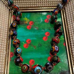 Antique Italian Gold Capped Milliefiorni Beaded Necklace$40Denton, TX