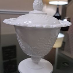 Vintage Colony Harvest Milk Glass Grapes Pedestal Bow