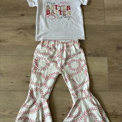 Baseball Outfit Hey Batter Batter Swing Girls SZ 4-5T Bell Bottom Pants Shirt$10Fort Worth, TX