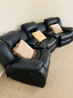 Black Leather Reclining Sofa Set with Storage & Cup Holders – Great Condition$650Lucas, TX