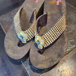 Justin Rhinestone Flip Flops Thong Sandals Wedge Heel Women’s Size 7 Cross$20Fort Worth, TX