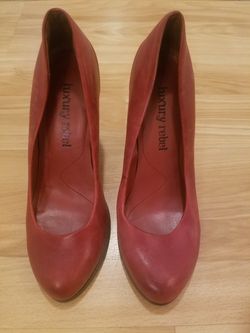 Anthropologie Luxury Rebel red leather stacked heels sz 7.5$5Dallas, TX