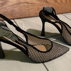 Heel Women’s Black With Nude Base And Glitter Rhinestones With Half A Bow In The Back $35Hurst, TX