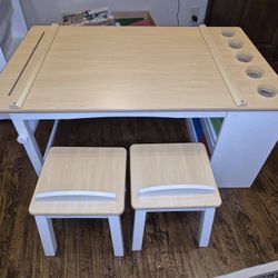 Guidecraft Small Kids Arts Crafts Desk Table 2 Chairs Paper Roll Storage Bins$100Frisco, TX