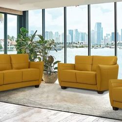 Valeria Mustard Leather 3-Piece Living Room Set