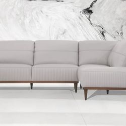 Tampa Pearl Gray Leather Sectional Sofa