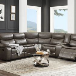 Saul Gray Leather-Aire Sectional Sofa (Power Motion/USB)