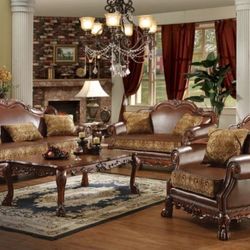 Dresden Brown PU & Chenille, Cherry Oak 3-Piece Living Room Set