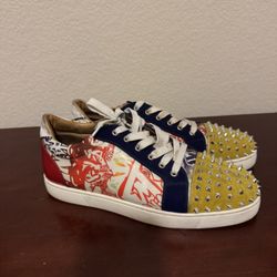 Christian Louboutin Graphic Design Blue Suede Yellow Leather Sneakers$275Cross Roads, TX