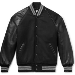 DeLONG Black Letterman Jacket Snap Front Leather Sleeves juniors size XL$130Dallas, TX
