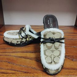 Coach Brown Beige White Leather Logo Clogs$45Euless, TX