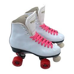 Dominion Esprit Vintage White Leather Red Wheel Roller-skates Women Sz 7 $125Prosper, TX