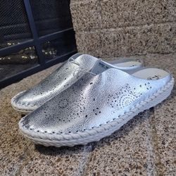 Bernie Mev Shoes Silver Pattern Mules Classy Boho Coastal Women 7.5$20Fort Worth, TX