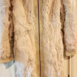 JENNYFER J CREAM LONG 100% RABBIT FUR AND 100% LEATHER COAT