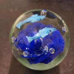 GORGEOUS Art Glass 4" Dolphins Motif Paperweight.