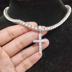 Sliver Tennis Diamond 20in cross pendant necklace suitable for parties$150Dallas, TX