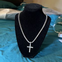 Sliver Tennis Diamond 20in cross pendant necklace Unisex $150Dallas, TX