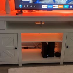Modern White TV Stand w/ LED Lights – Storage Cabinets + Shelves$130Dallas, TX