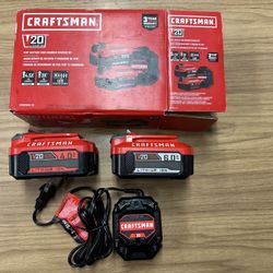 New Craftsman 2 Batteries W/ Charger 4.0 AH & 6.0 AH 20V$100Callisburg, TX