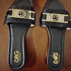 Guess GBG GGDANNA Sandals Black Wedge Silver Logo Buckle Women's $15Lewisville, TX
