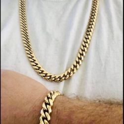 12mm Miami Cuban Link Chain & Bracelet 14k Yellow Gold Over Stainless Steel $120Mckinney, TX