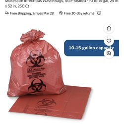 McKesson Biohazard Bags, 10 to 15 gal [250 Count] Hazardous Infectious Waste Bag, Medical Hospital Grade, Red$20Grand Prairie, TX