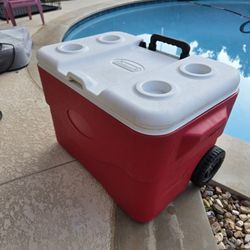 Rubbermaid 60 Qt Rolling Camping Cooler with Cup Holders$30Flower Mound, TX