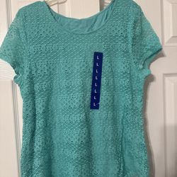 Leo & Nicole Teal Lace Overlay Short Sleeve Blouse $15Dallas, TX