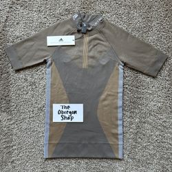 ADIDAS STELLA MCCARTNEY WOMENS RUNNING KNIT TEE SHIRT MOCK TURTLENECK TOP SIZE XS BEIGE CREAM BROWN GRAY NEW$40Plano, TX