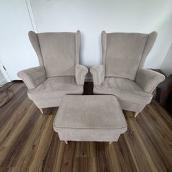 MOVING SALE!!! 2 IKEA Strandmon Chairs and Ottoman - Beige $500Mesquite, TX