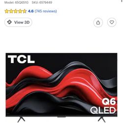 TCL 65” QLED Tv$380El Paso, TX