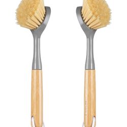 2 Pack Dish Brushes with Bamboo Handle, Kitchen Dish Scrubber Built-in Scraper, Scrub Brush for Pans, Pots, Counter & Kitchen Sink Cleaning, Dishwashi$7El Paso, TX