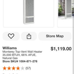 Williams Monterey Top-Vent Wall Heater 35,000 BTUH, 66% AFUE, Natural Gas$785El Paso, TX