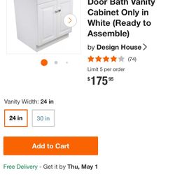 Wyndham 24 in. 2-Door Bath Vanity Cabinet Only in White (Ready to Assemble)$105El Paso, TX