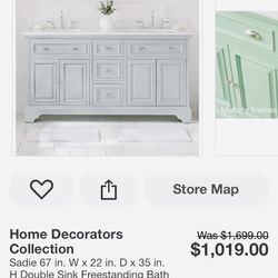 Home Decorators Collection Sadie 67 in. W x 22 in. D x 35 in. H Double Sink Freestanding Bath Vanity in Gray w/ Lightly Veined White Marble Top$650El Paso, TX