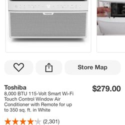 Toshiba 8,000 BTU 115-Volt Smart Wi-Fi Touch Control Window Air Conditioner with Remote for up to 350 sq. ft. in White$175El Paso, TX