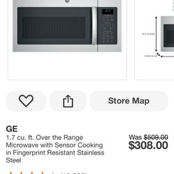 GE 1.7 cu. ft. Over the Range Microwave with Sensor Cooking in Fingerprint Resistant Stainless Steel$239El Paso, TX