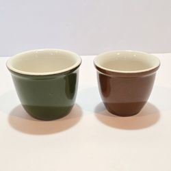 VINTAGE HALL POTTERY ~SET OF 2~Ceramic Custard Cups or Ramekins, possibly model numbers 351 or 142, one in forest green and one in brown. BOTH- $10El Paso, TX