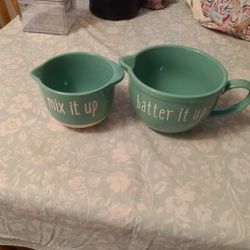 (2” PIECE SERVING SET OF FLORAL DOTS & THEY ARE MADE OF CERAMIC WHITE & BLUE)$15Ysleta Sur, TX