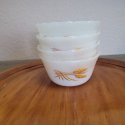 4 Vtg Fire King 6 oz Custard Condiment Cup Bowl Wheat Pattern #424$12El Paso, TX
