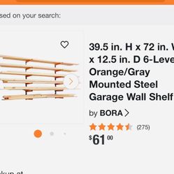 39.5 in. H x 72 in. W x 12.5 in. D 6-Level Orange/Gray Mounted Steel Garage Wall Shelf by BORA$35El Paso, TX