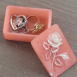 Vtg Design Gifts Incolay Stone Pink Rose Jewelry Trinket Dresser Box, USA 2"x 1"$9El Paso, TX